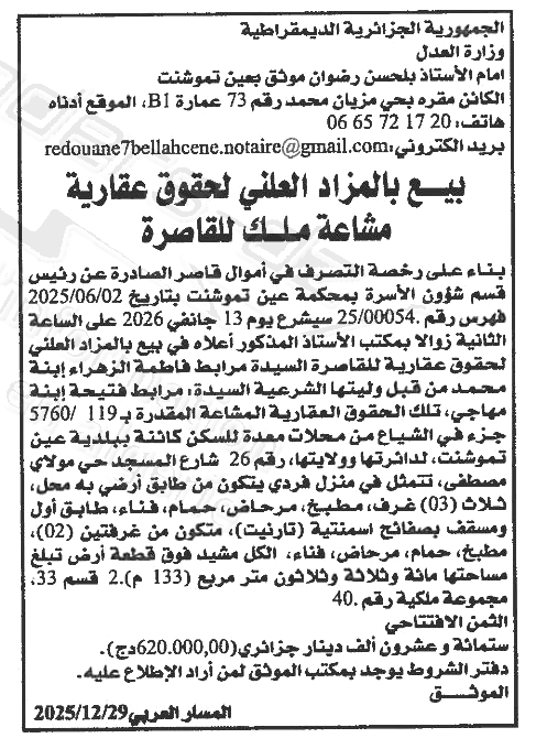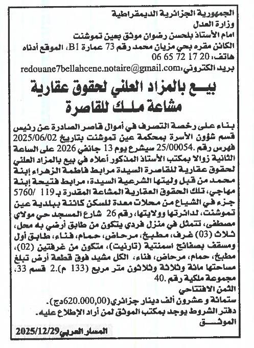 Il sera procédé à la vente au plus offrant et dernier enchérisseur le :