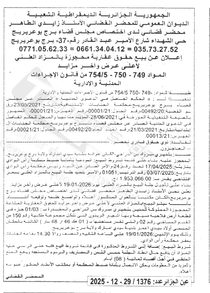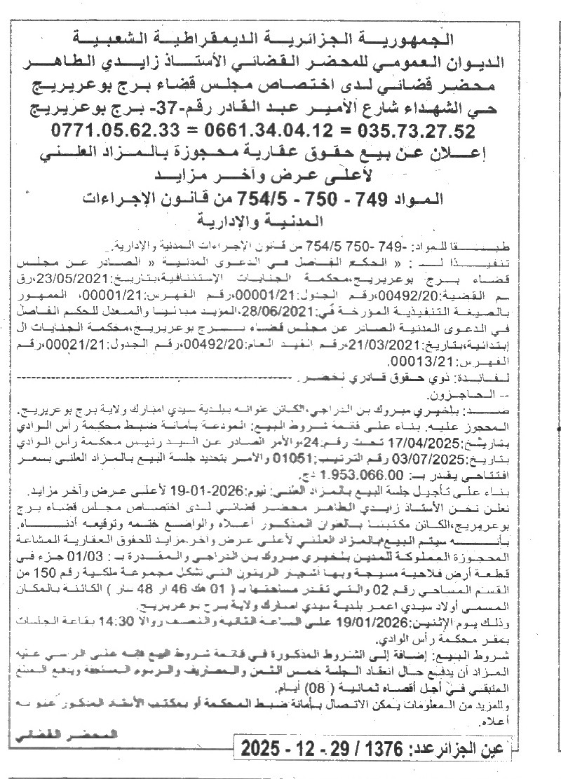 Il sera procédé à la vente au plus offrant et dernier enchérisseur le :