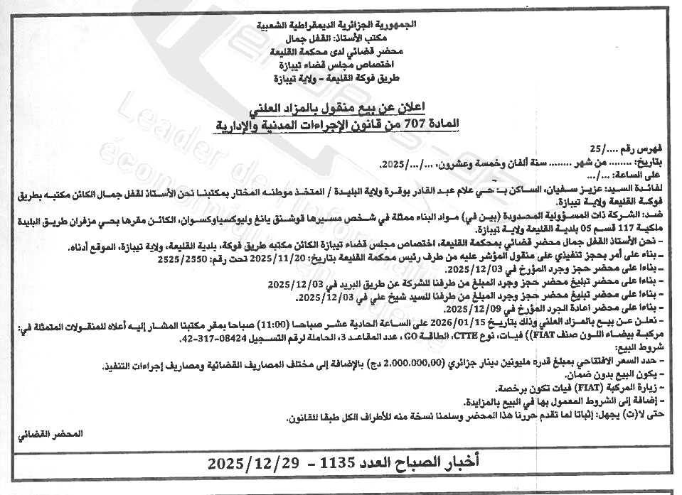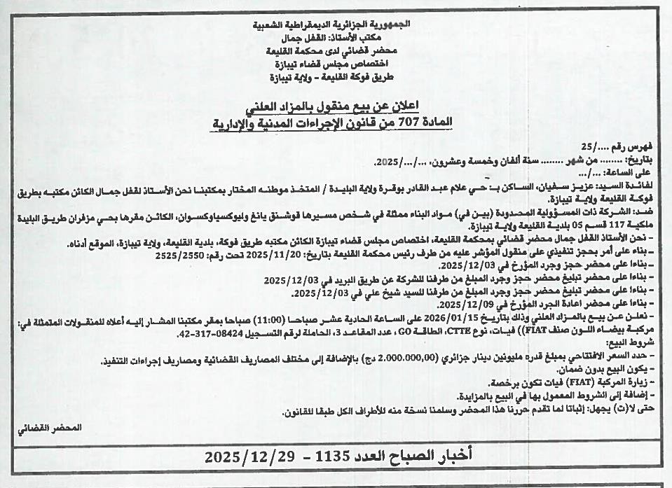 | Paru dans le journal : اخبار الصباح | |