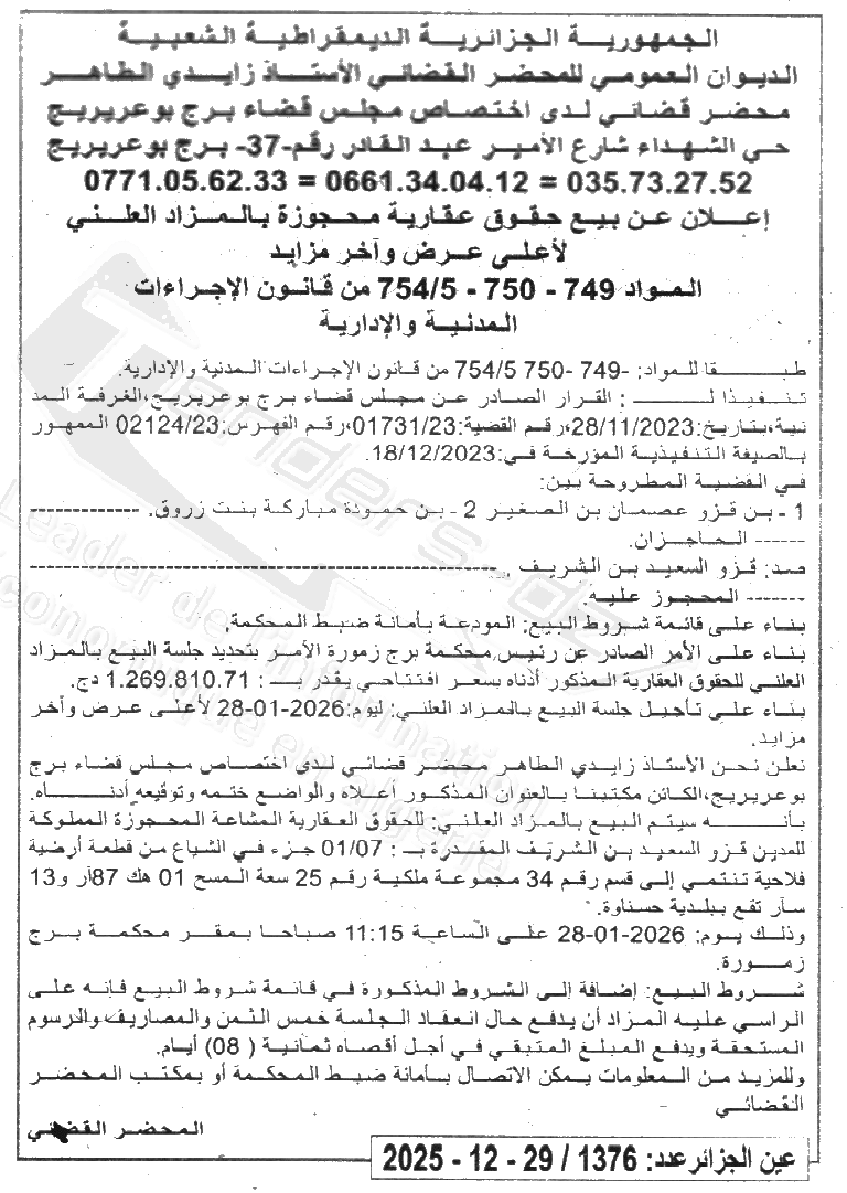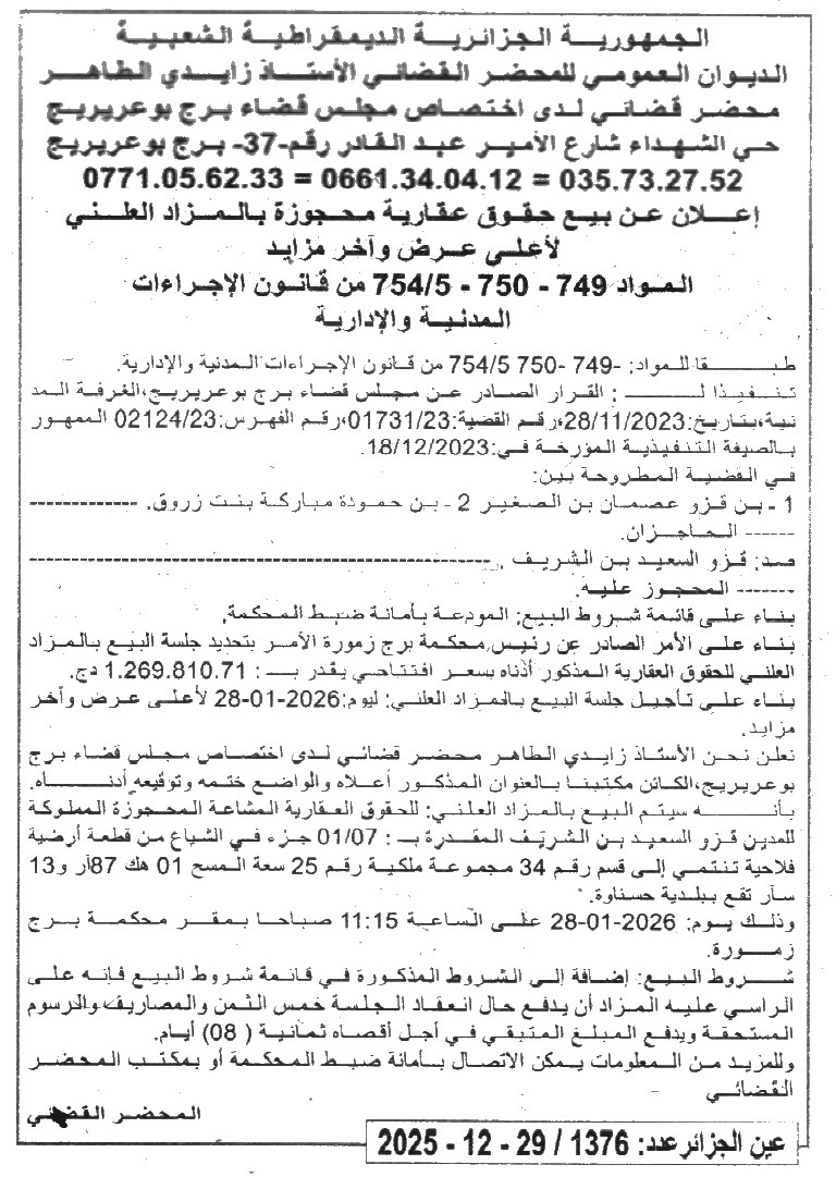 Il sera procédé à la vente au plus offrant et dernier enchérisseur le :