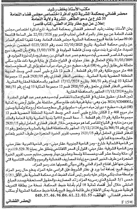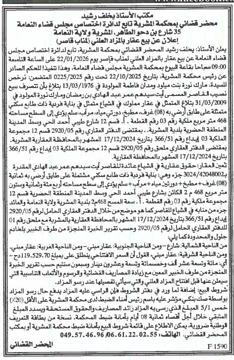 Il sera procédé à la vente au plus offrant et dernier enchérisseur le : 05/01/2026';