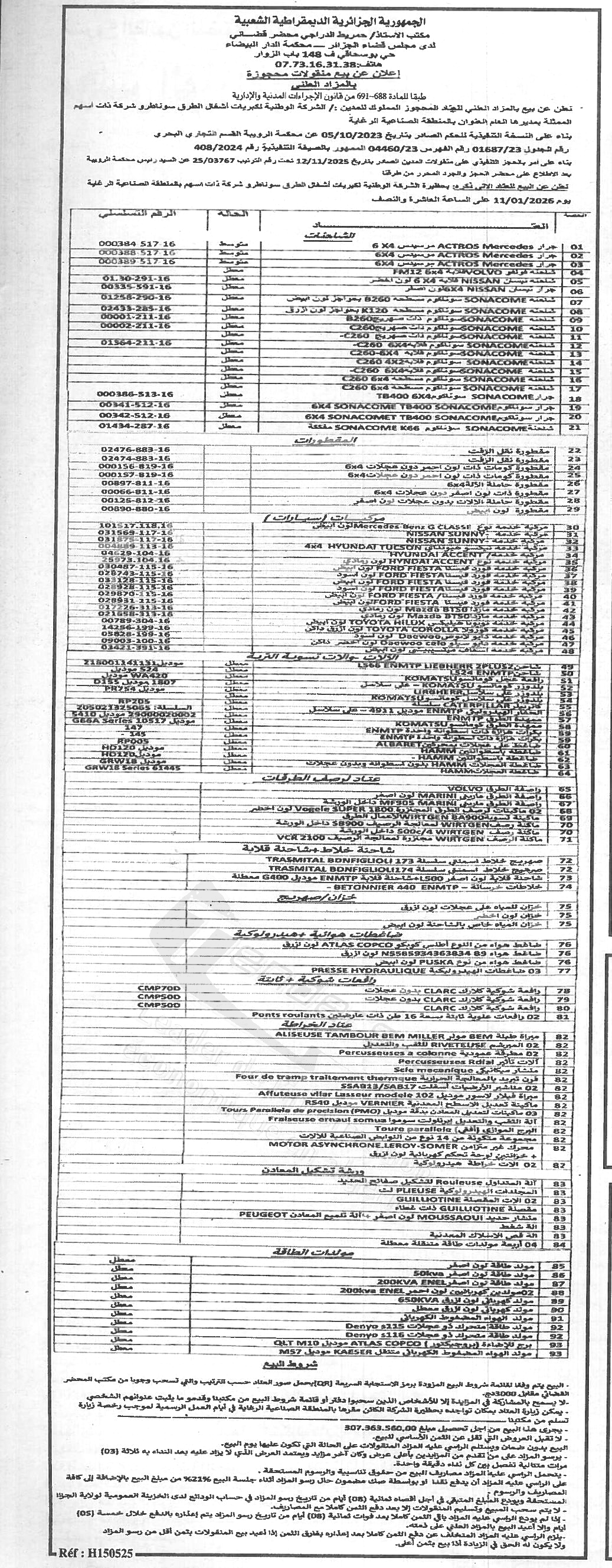 | Objet: Vente de divers équipements et véhicules | |