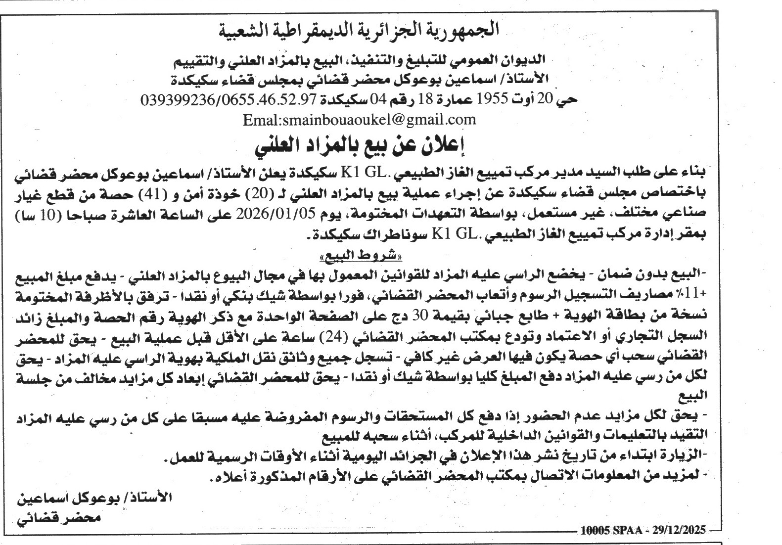 Il sera procédé à la vente au plus offrant et dernier enchérisseur le :