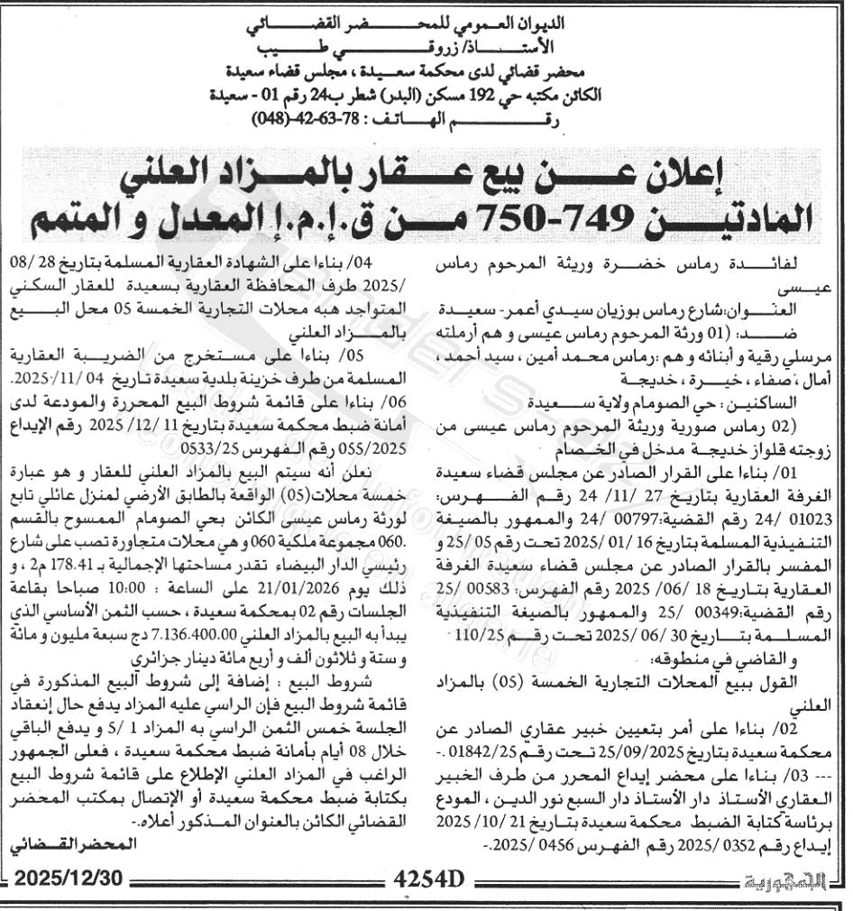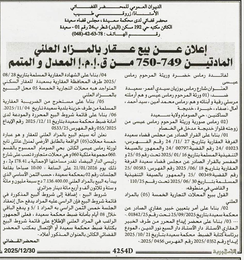 Il sera procédé à la vente au plus offrant et dernier enchérisseur le :