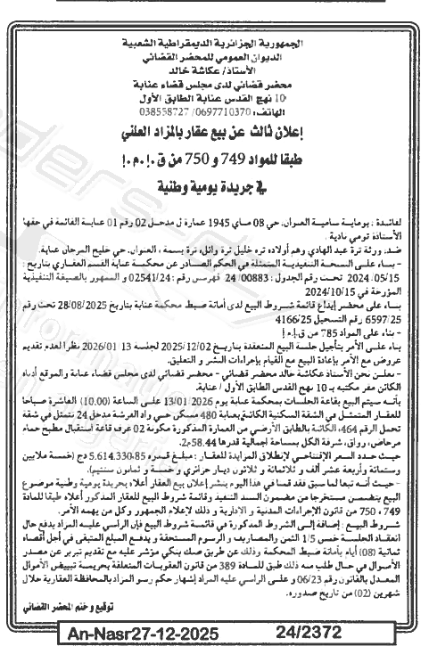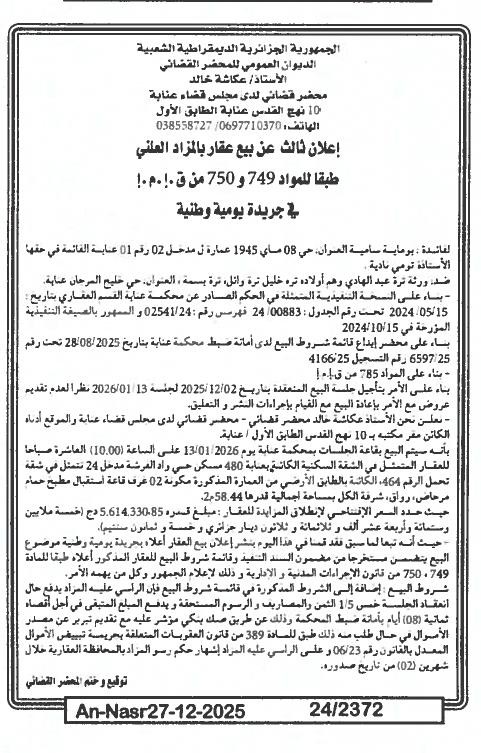 | Paru dans le journal : النصر | |