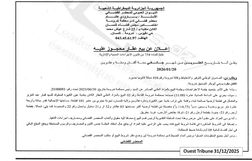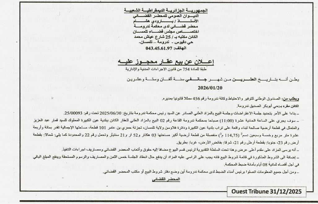 Il sera procédé à la vente au plus offrant et dernier enchérisseur le :