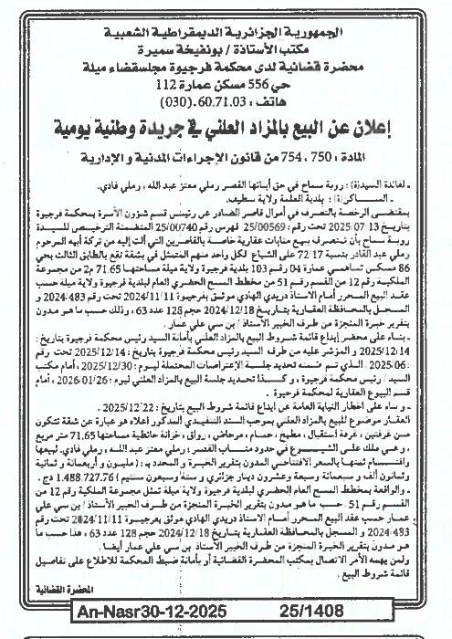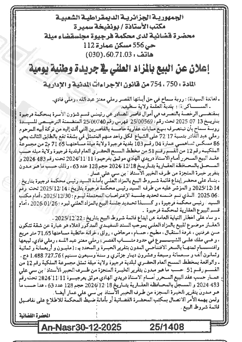 Il sera procédé à la vente au plus offrant et dernier enchérisseur le :