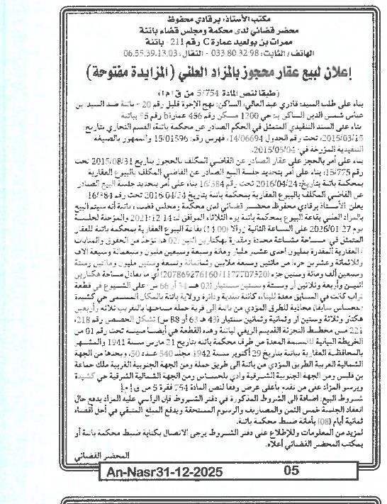 Paru dans le journal : النصر