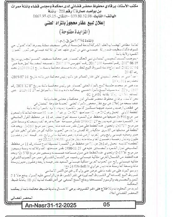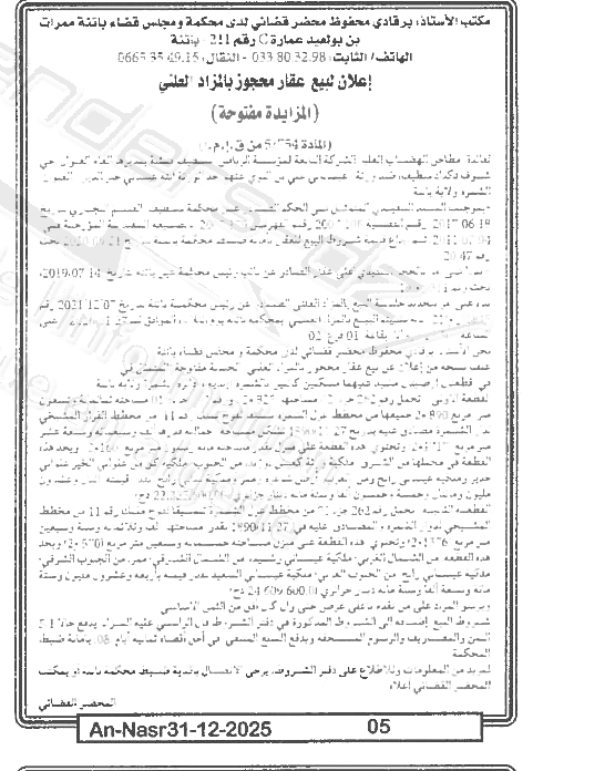 | Paru dans le journal : النصر | |