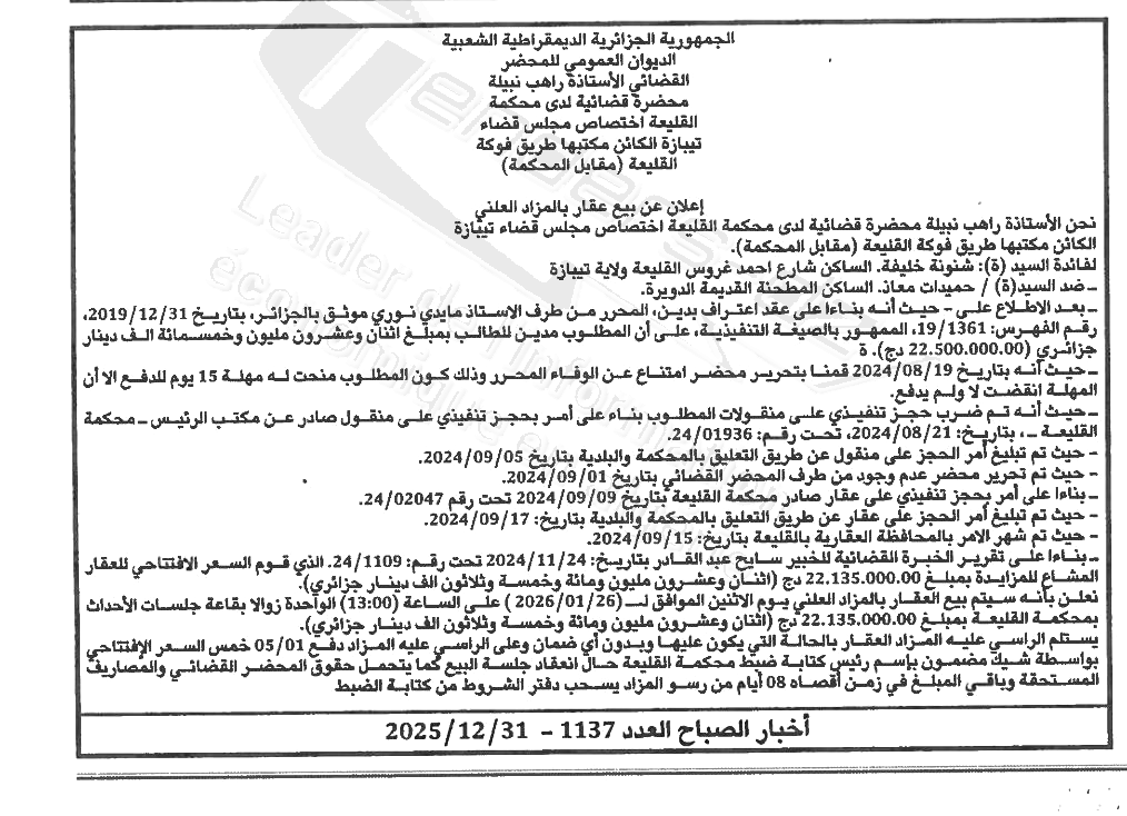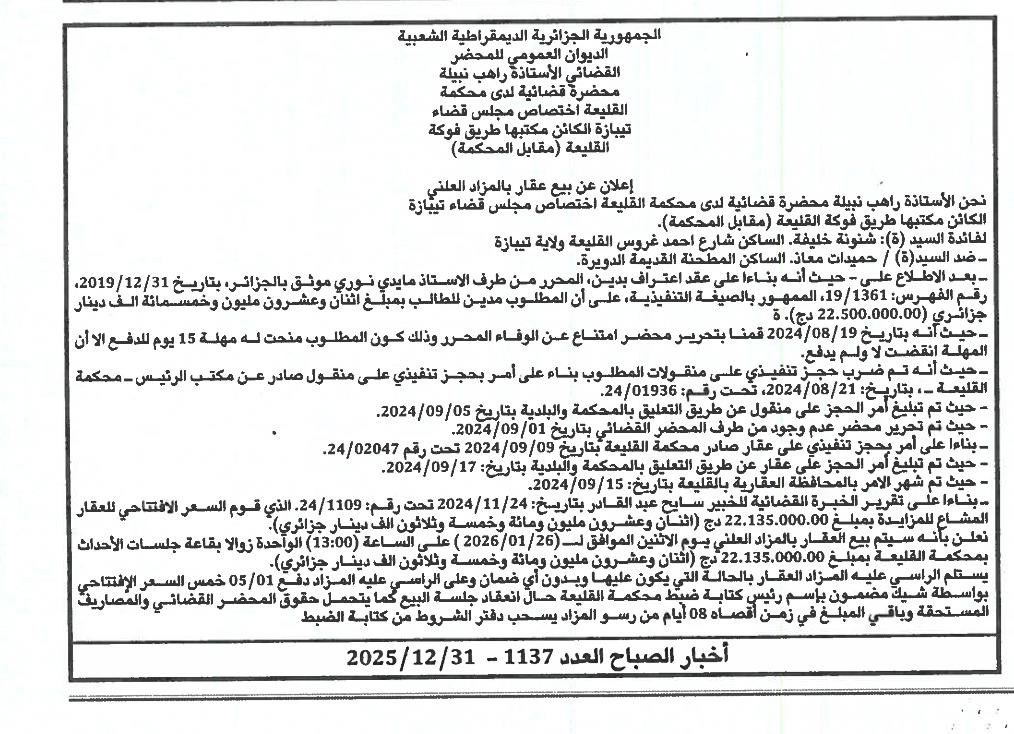 | Paru dans le journal : اخبار الصباح | |