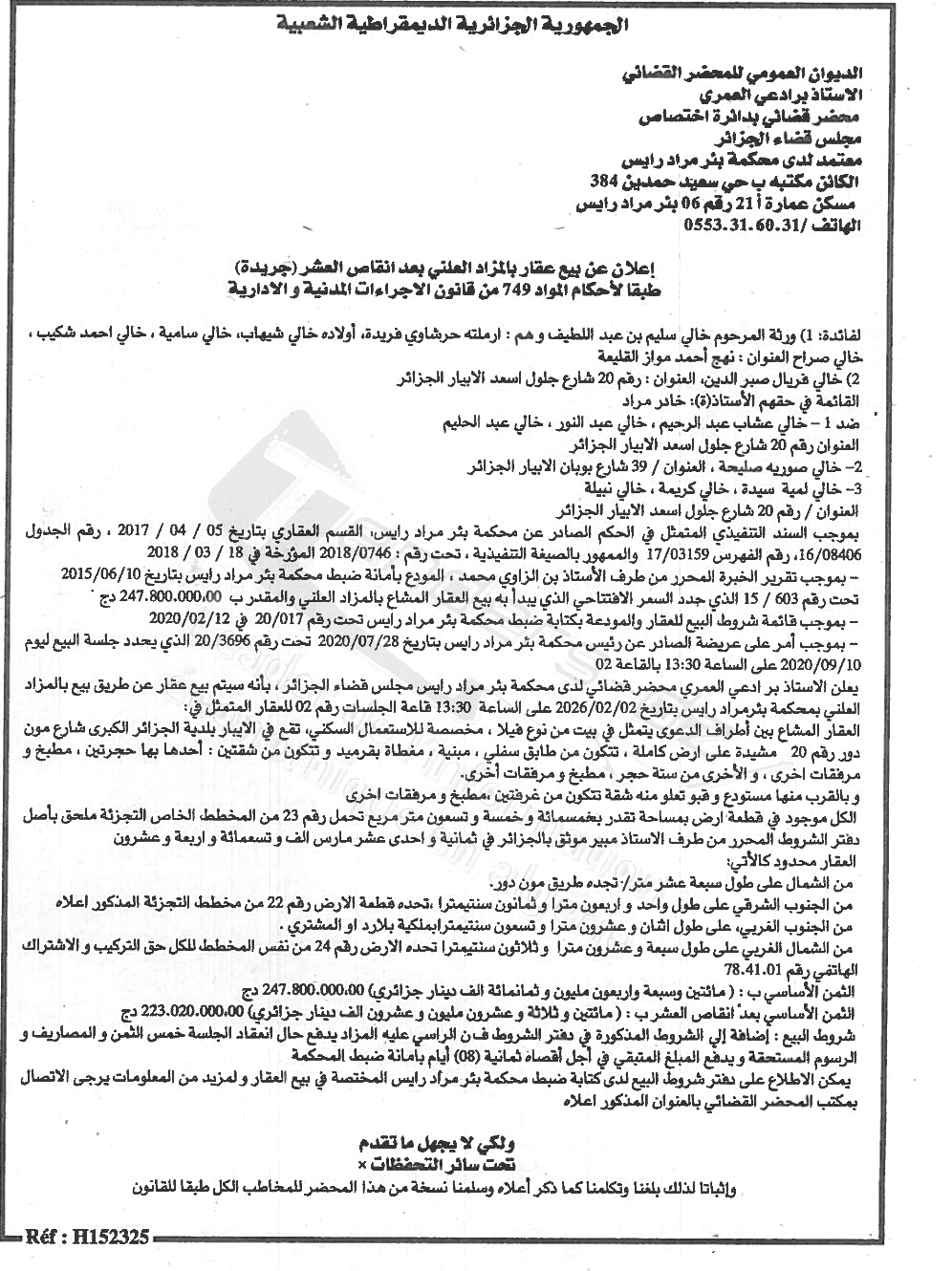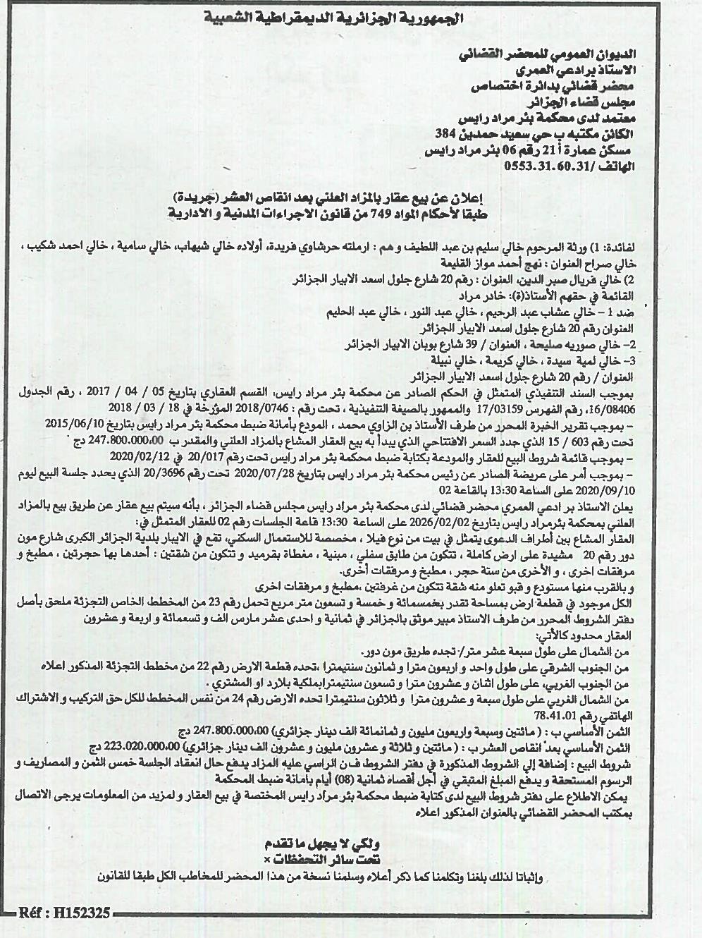 Il sera procédé à la vente au plus offrant et dernier enchérisseur le :