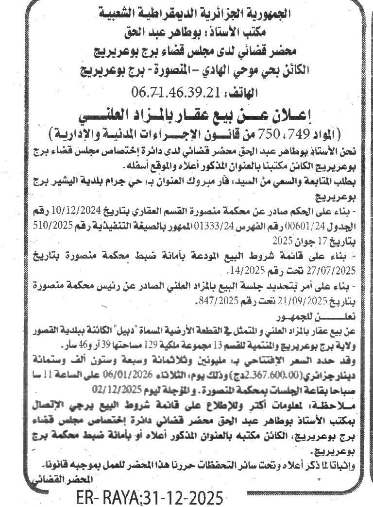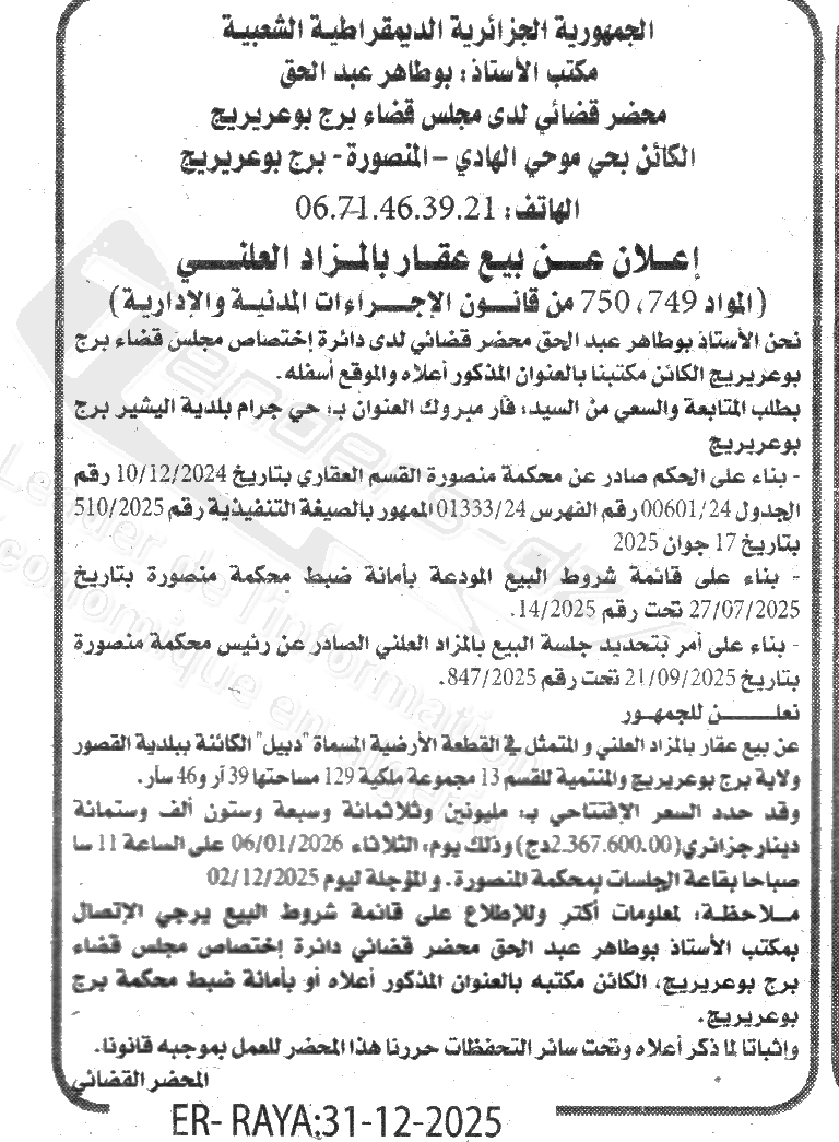Il sera procédé à la vente au plus offrant et dernier enchérisseur le :