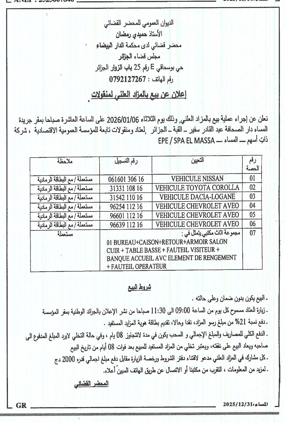 Il sera procédé à la vente au plus offrant et dernier enchérisseur le :