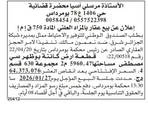 Il sera procédé à la vente au plus offrant et dernier enchérisseur le :