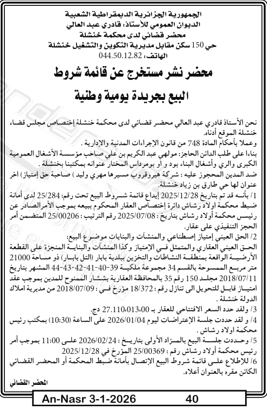 | Paru dans le journal : النصر | |