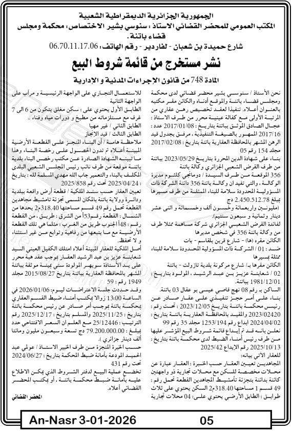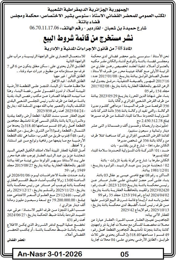 | Paru dans le journal : النصر | |