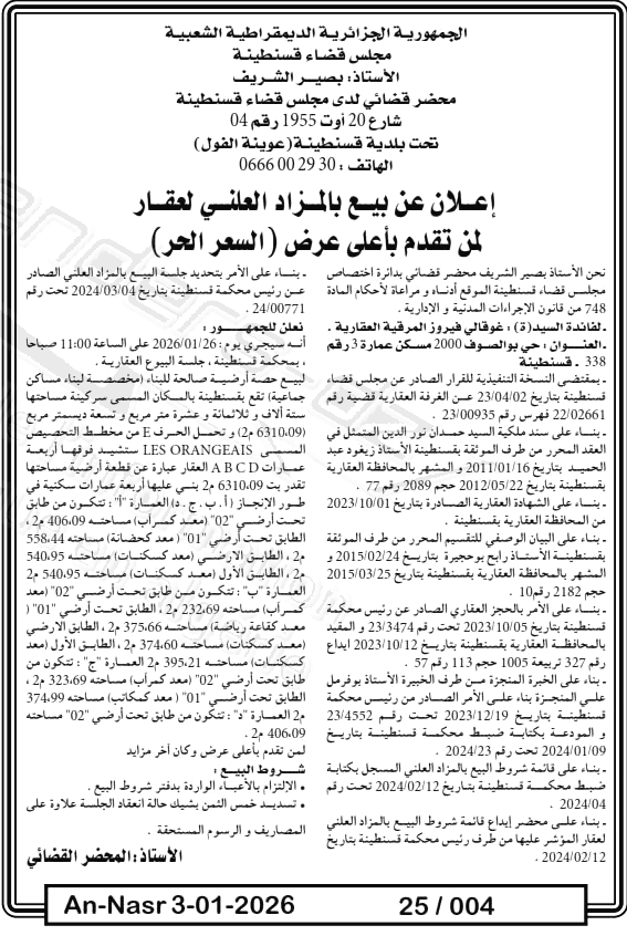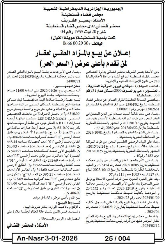| Paru dans le journal : النصر | |