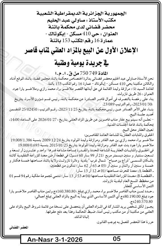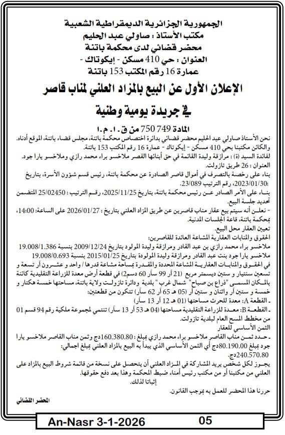 Paru dans le journal : النصر