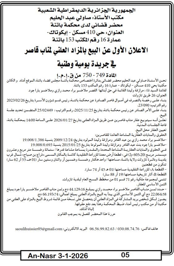 Paru dans le journal : النصر