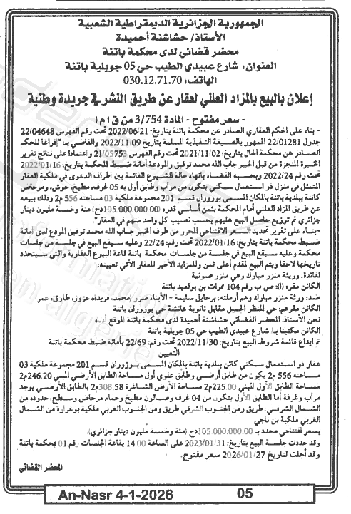 | Paru dans le journal : النصر | |