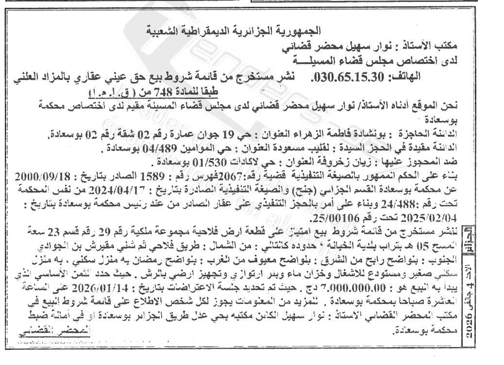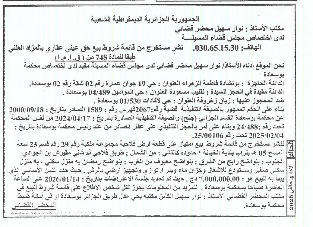 | Paru dans le journal : الجزائر | |