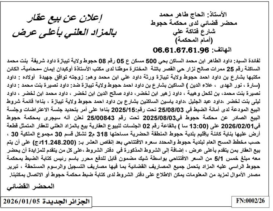 | Paru dans le journal : الجزائر الجديدة | |