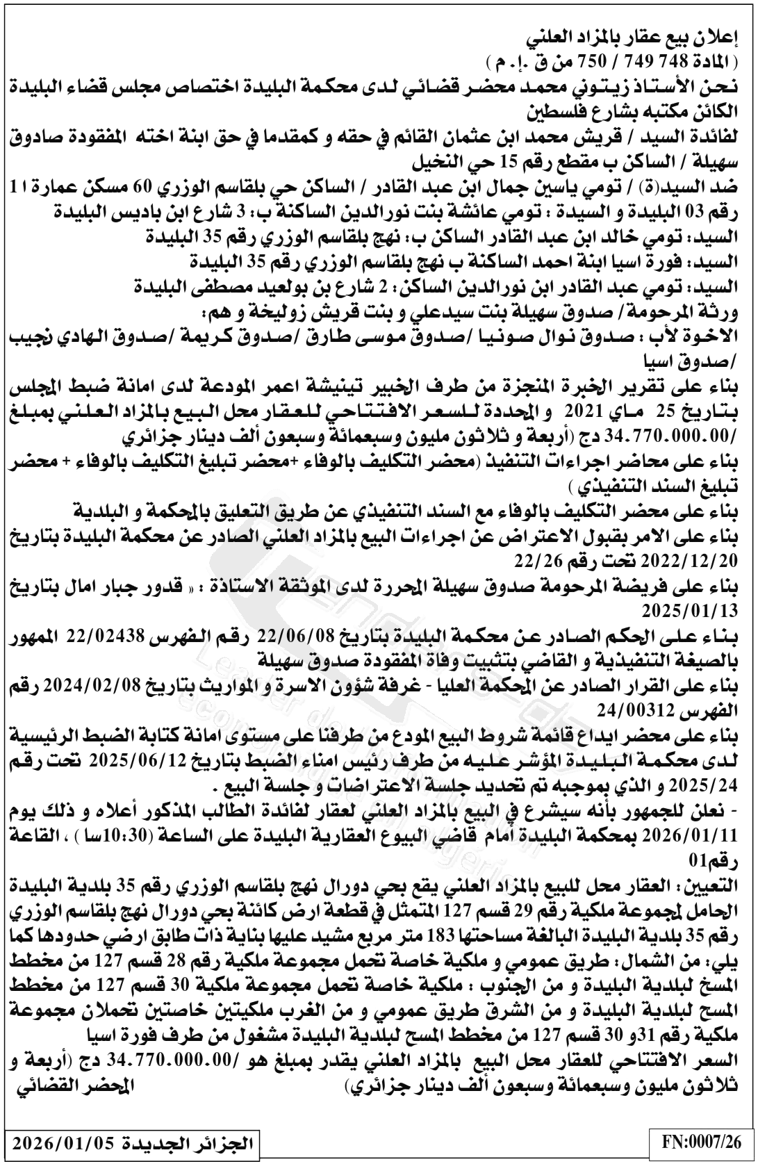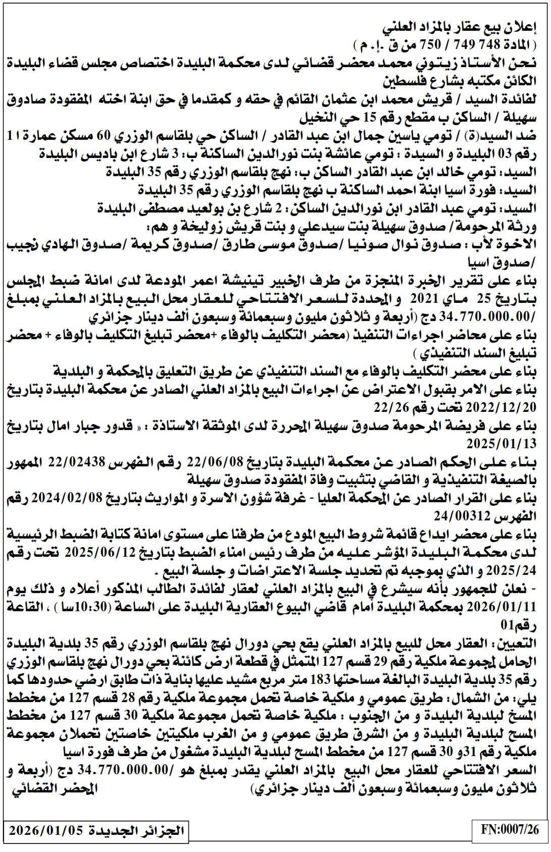 Il sera procédé à la vente au plus offrant et dernier enchérisseur le :