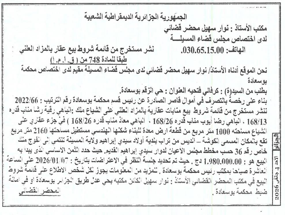 | Paru dans le journal : الجزائر | |