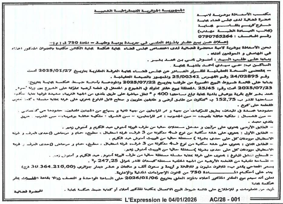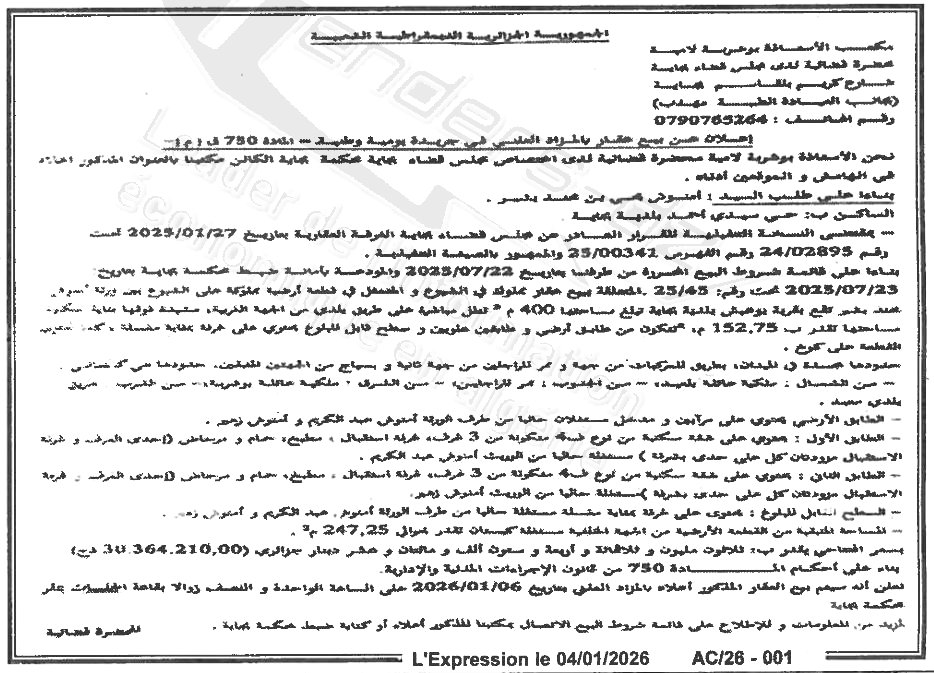 Il sera procédé à la vente au plus offrant et dernier enchérisseur le :