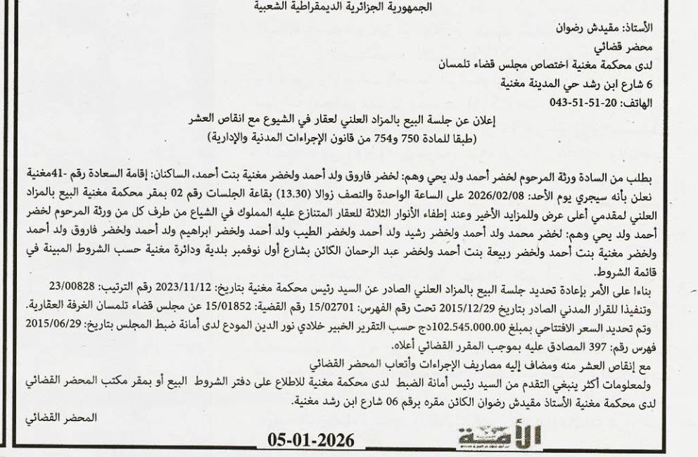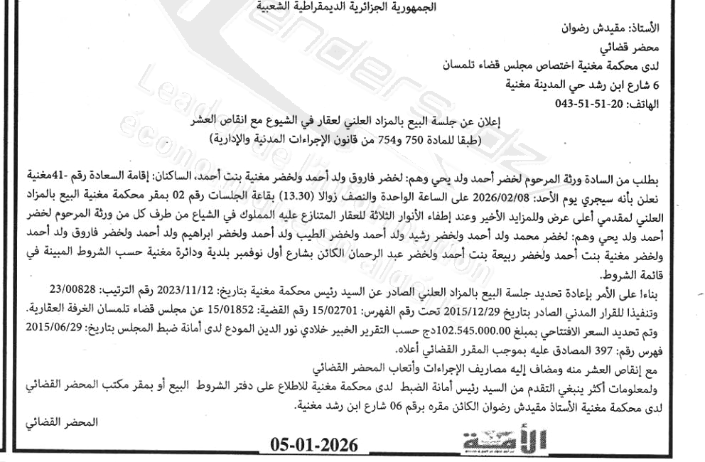Il sera procédé à la vente au plus offrant et dernier enchérisseur le :