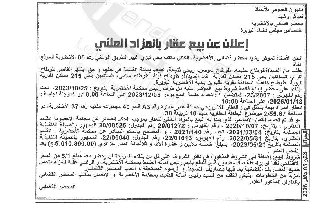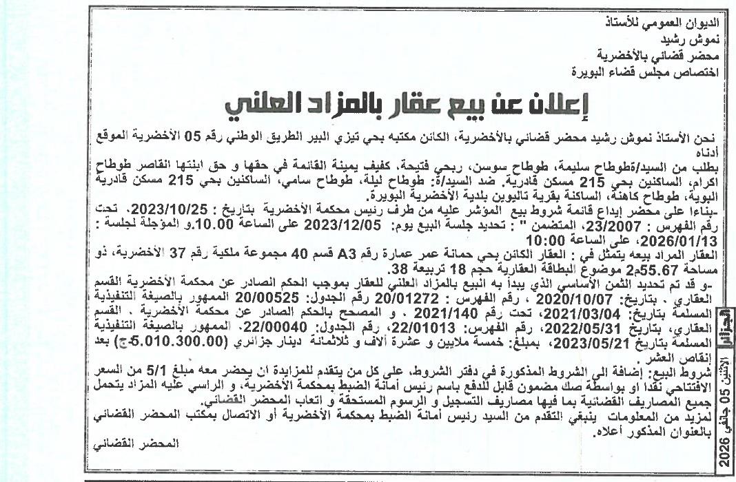 | Paru dans le journal : الجزائر | |