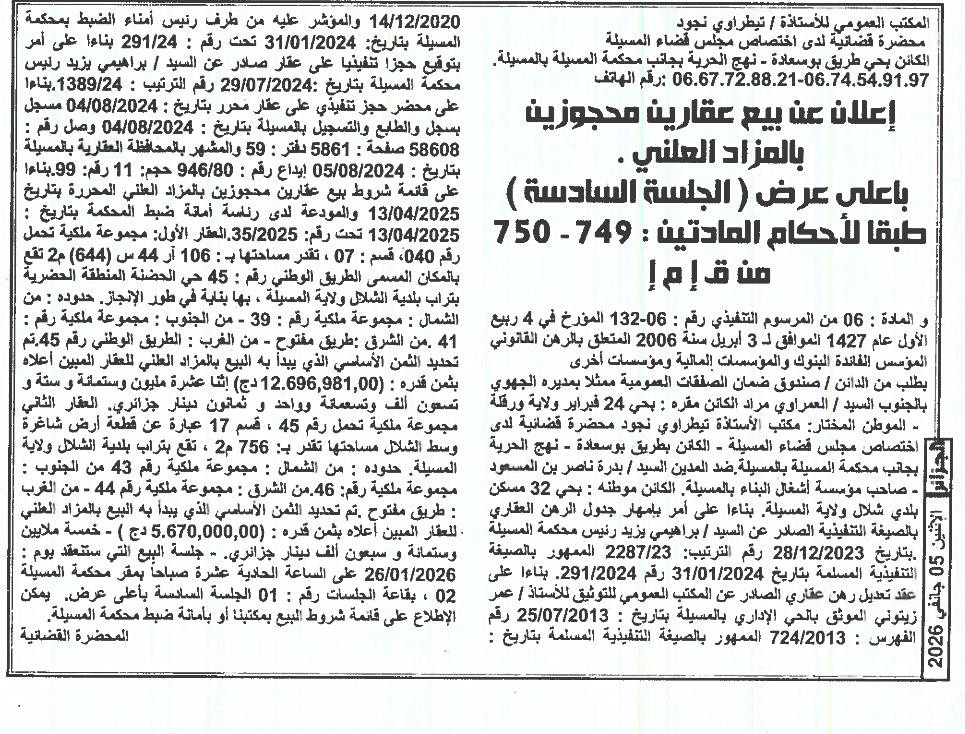 Il sera procédé à la vente au plus offrant et dernier enchérisseur le :