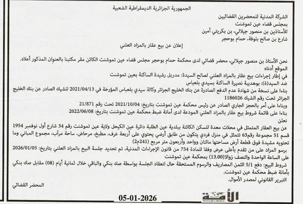 | Objet: Vente d'un immobiliers | |