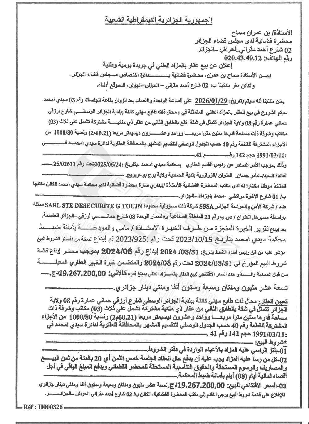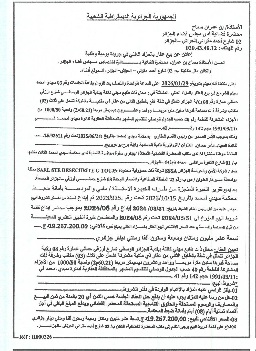 Il sera procédé à la vente au plus offrant et dernier enchérisseur le : 12/01/2026';