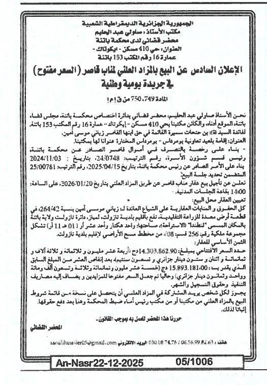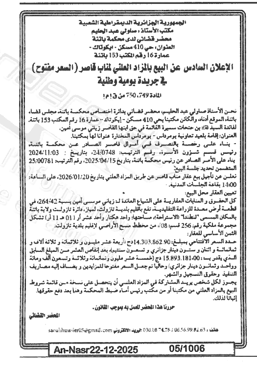 Il sera procédé à la vente au plus offrant et dernier enchérisseur le :
