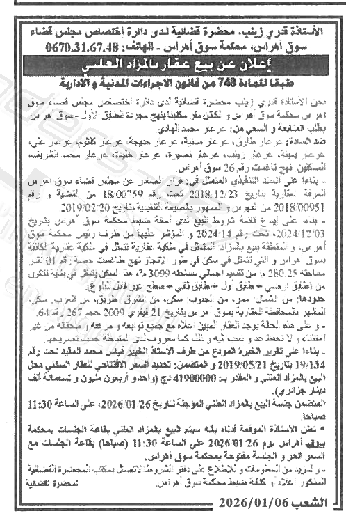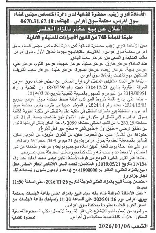Il sera procédé à la vente au plus offrant et dernier enchérisseur le :