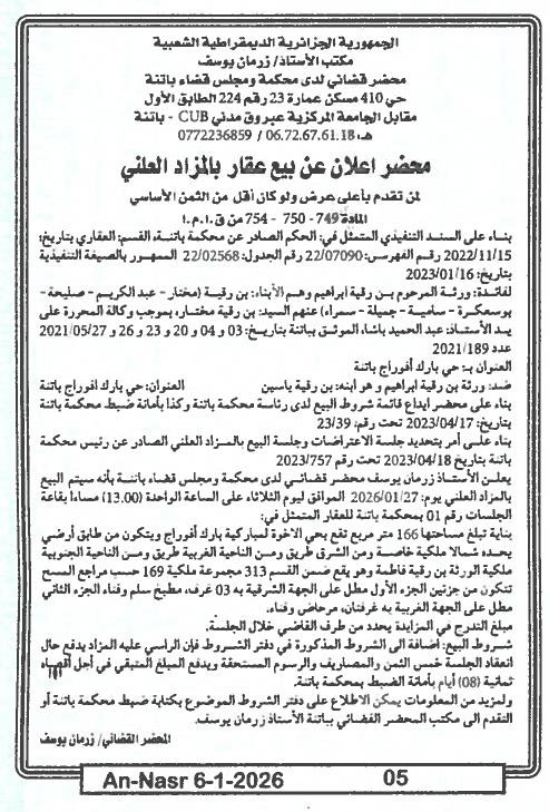 | Paru dans le journal : النصر | |