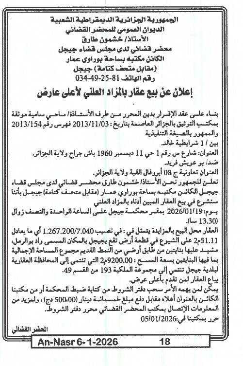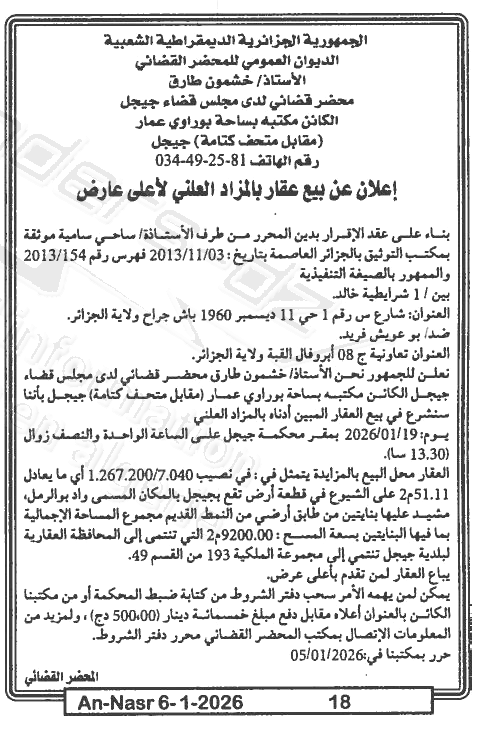 Il sera procédé à la vente au plus offrant et dernier enchérisseur le :
