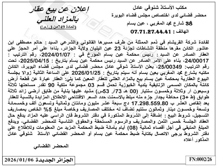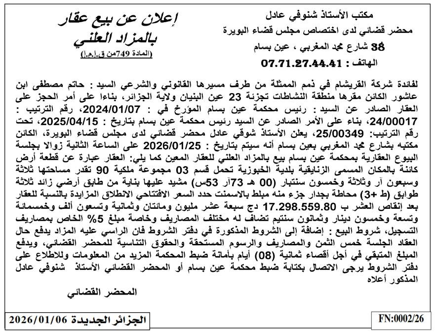 | Paru dans le journal : الجزائر الجديدة | |