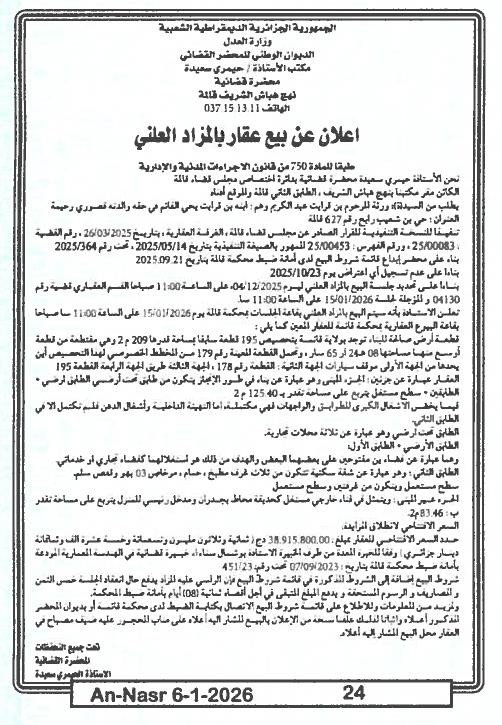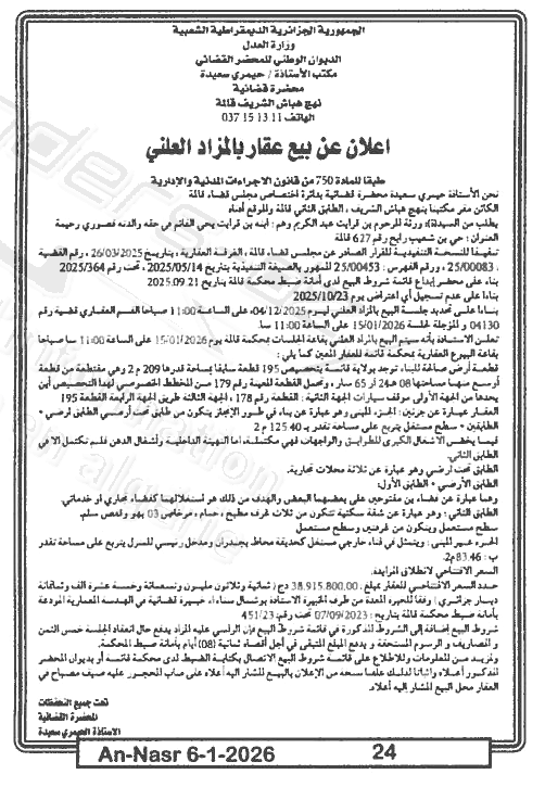 Il sera procédé à la vente au plus offrant et dernier enchérisseur le :