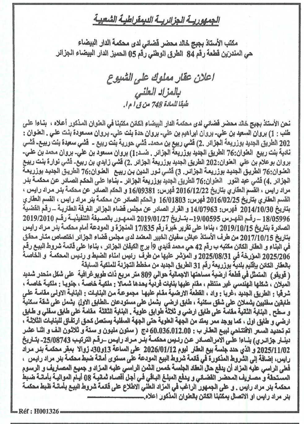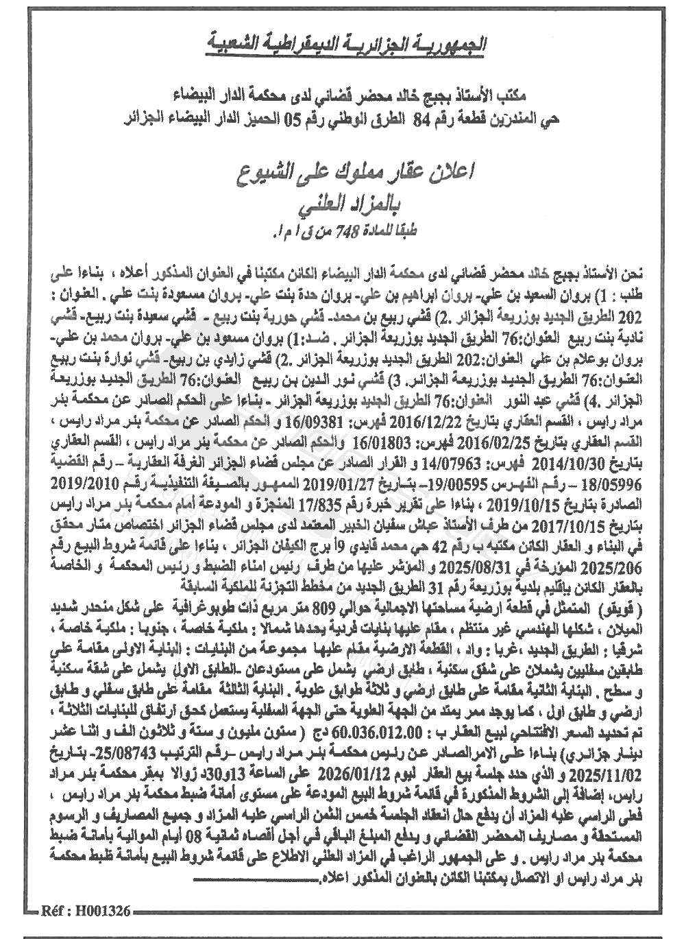 | Objet: Vente des biens immobiliers | |