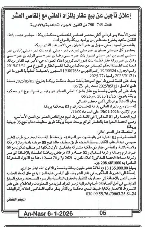 | Paru dans le journal : النصر | |