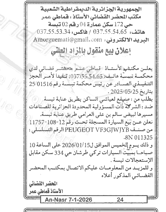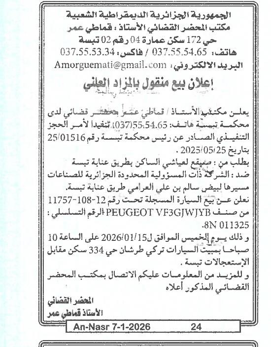| Paru dans le journal : النصر | |