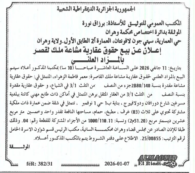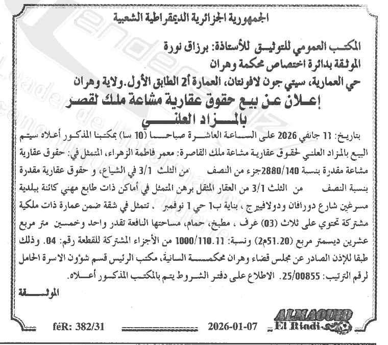 Il sera procédé à la vente au plus offrant et dernier enchérisseur le :
