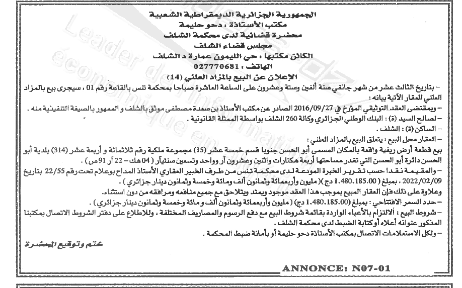 | Wilaya : Chlef | |