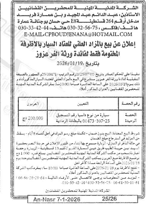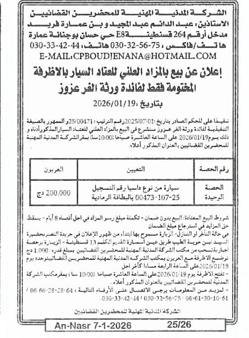 | Paru dans le journal : النصر | |
