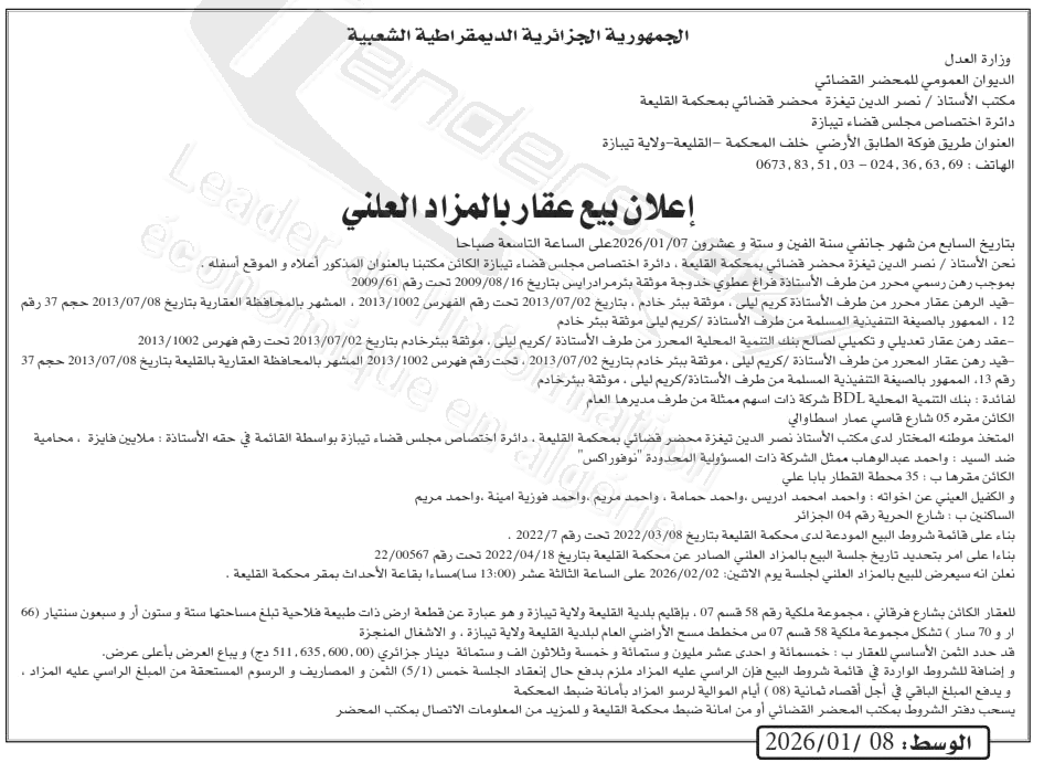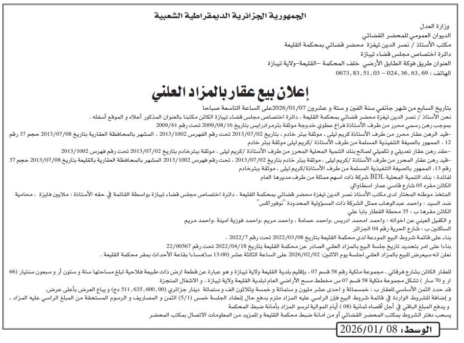 Il sera procédé à la vente au plus offrant et dernier enchérisseur le :