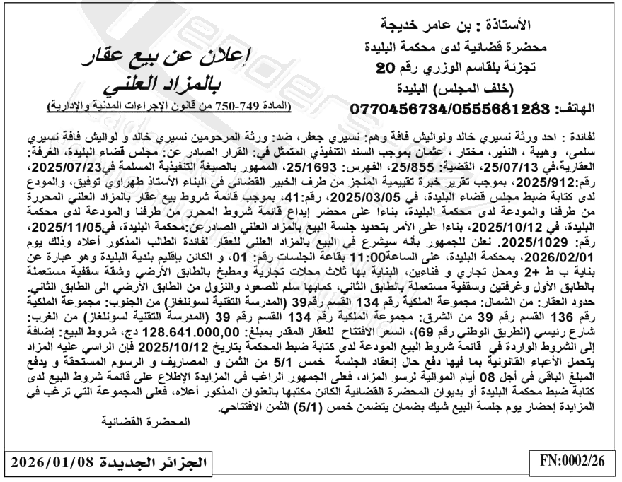 • Journal De Parution: الجزائر الجديدة