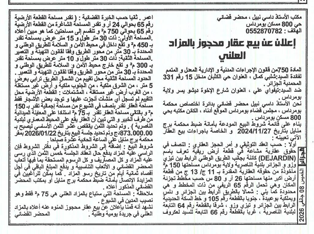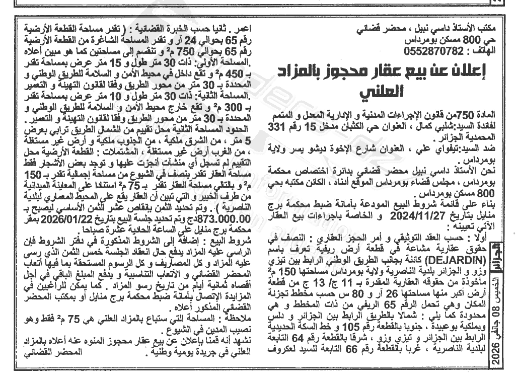 Il sera procédé à la vente au plus offrant et dernier enchérisseur le :