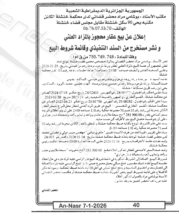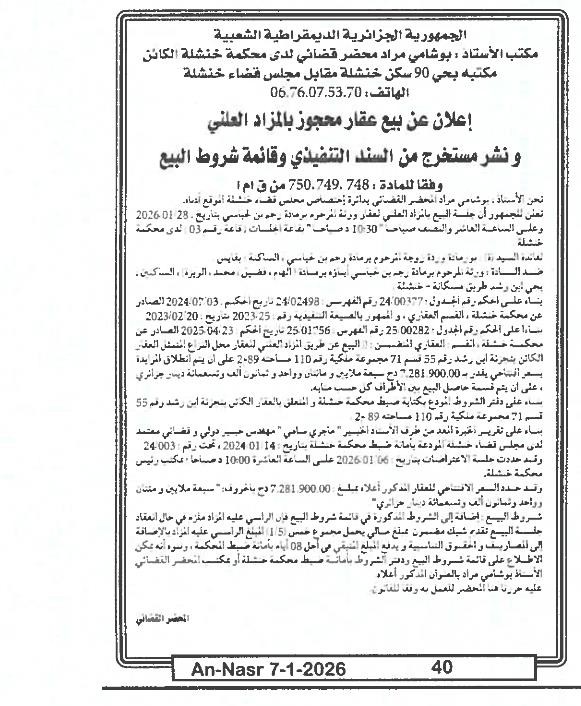 | Paru dans le journal : النصر | |